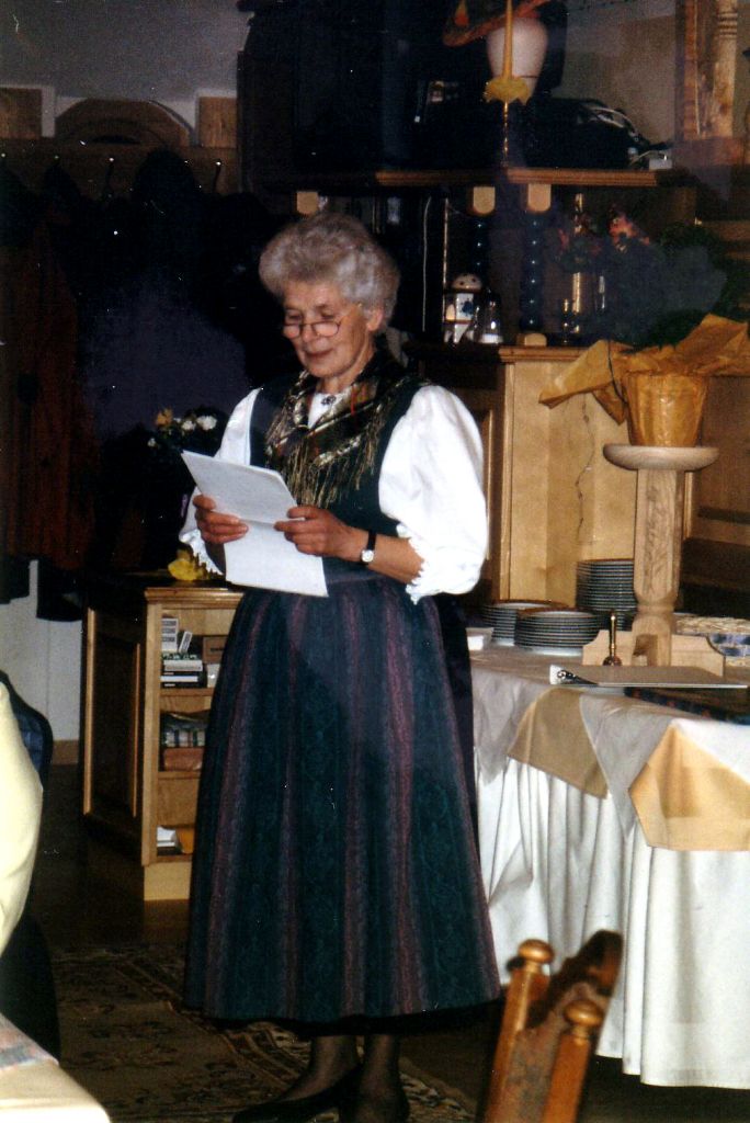 Sie schenkte ihren Mitmenschen ihre Aufmerksamkeit und kam mit allen gut aus. Wenn sie gebraucht wurde, sei es in der Familie oder in der Gruppe war sie stets zur Stelle und half mit Rat und Tat.