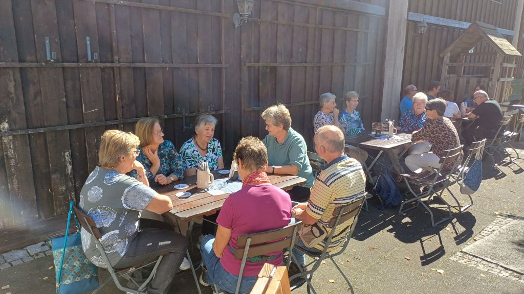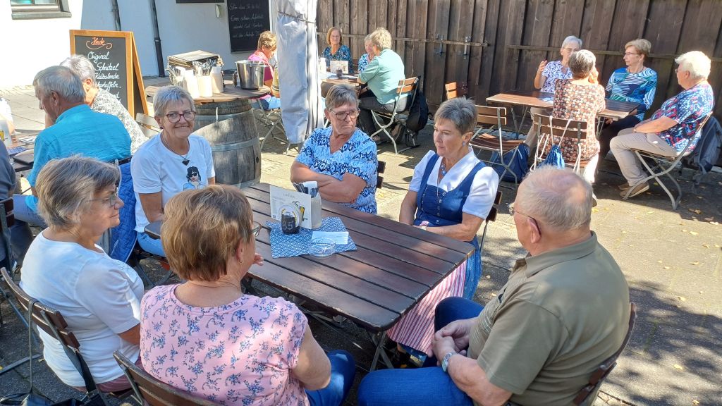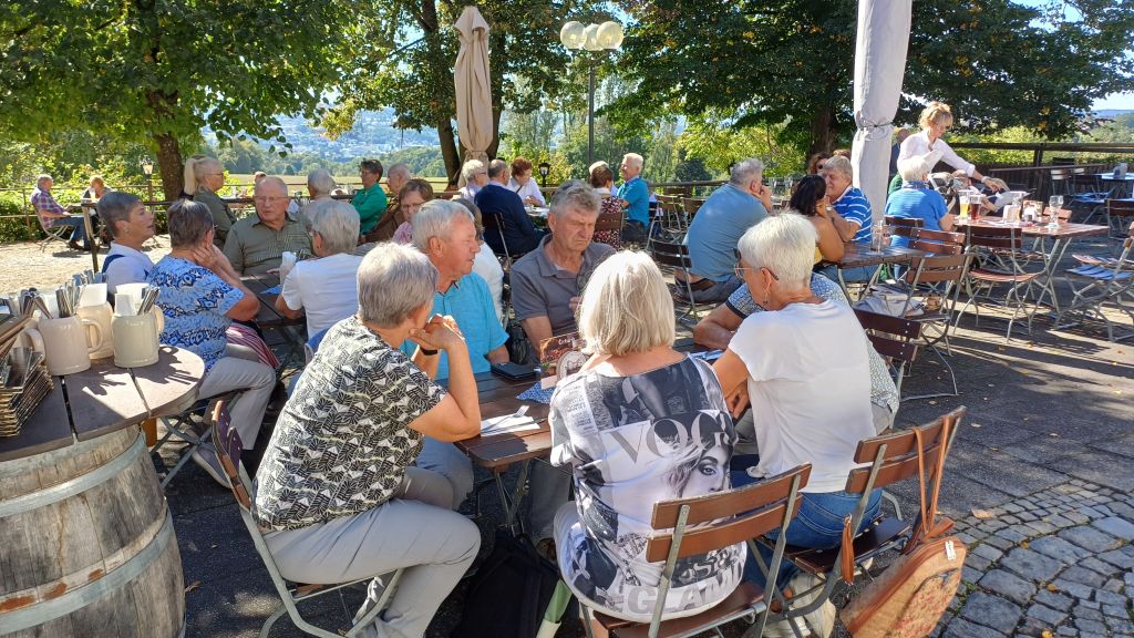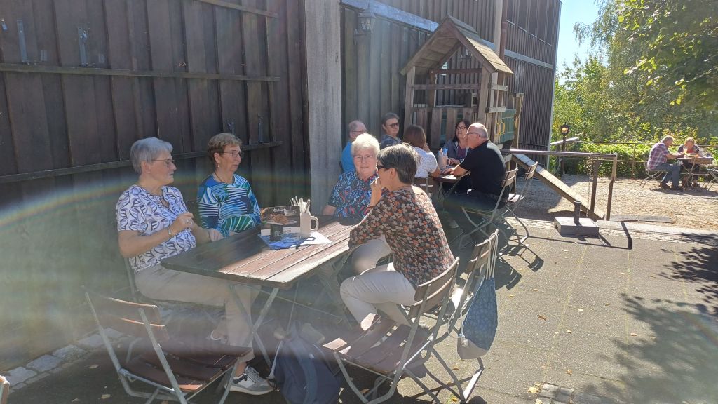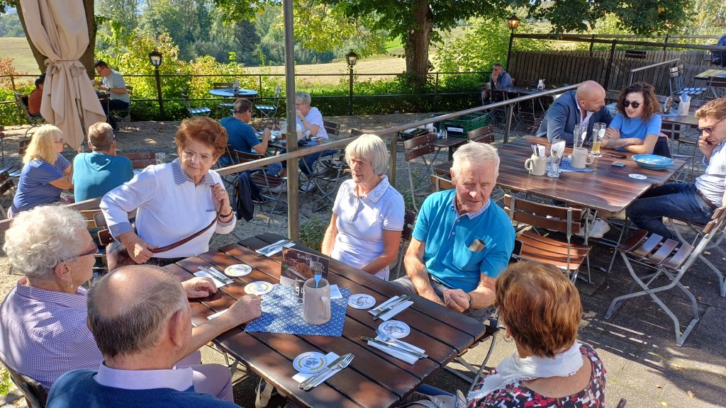Nach diesem ereignisreichen Vormittag genossen alle das Mittagessen in einem schattigen Gastgarten.