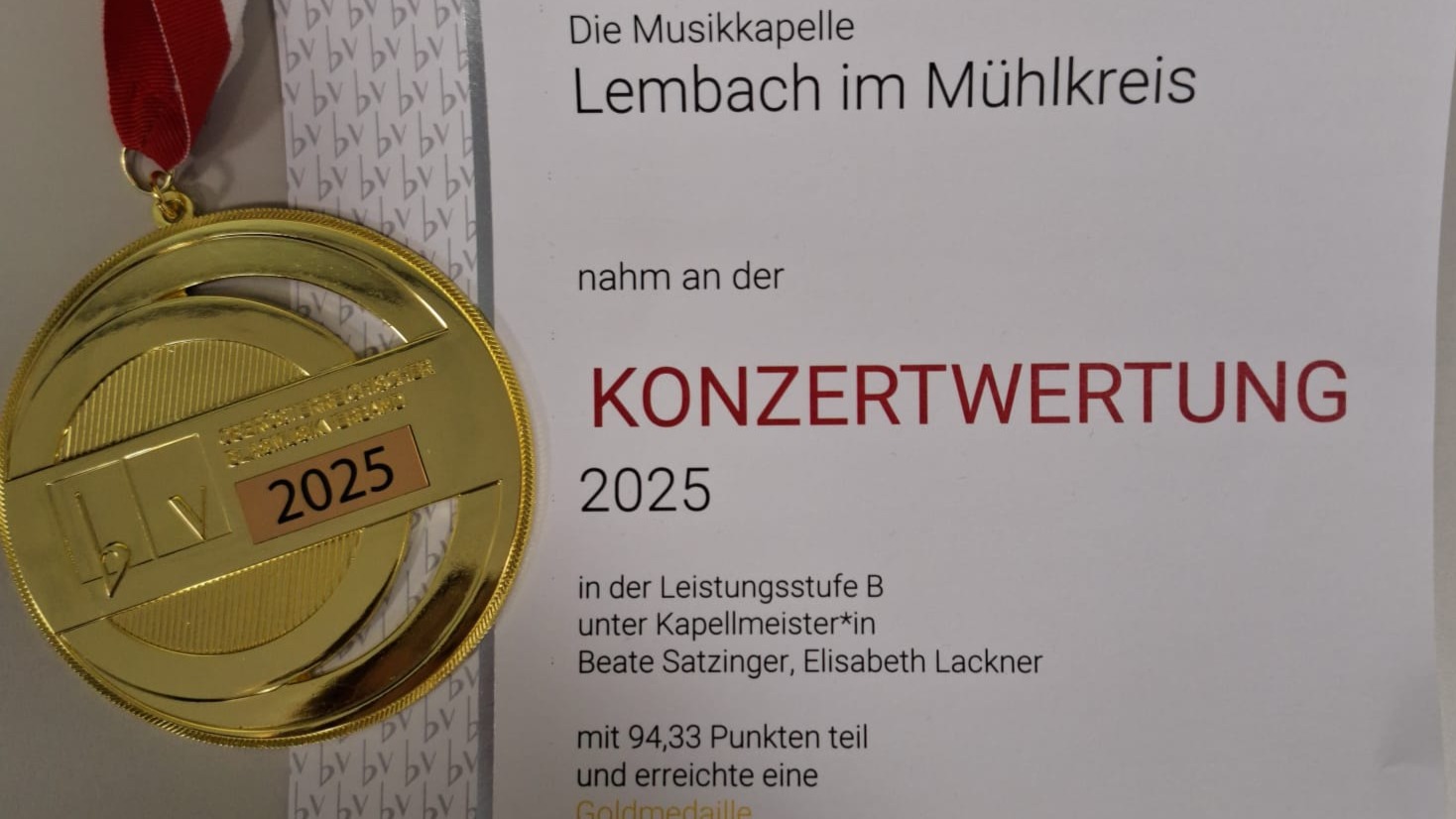 Voller Erfolg bei den Bläsertagen in der ADH! Wir – der MV Lembach – holten mit unseren Stücken „Nora“, „Zillertal-Suite“ und „The Greatest Show“ eine Goldmedaille mit sensationellen 94,33 Punkten. Das wurde im Anschluss natürlich gebührend gefeiert. Ein großes Danke an unsere Kapellmeisterinnen Lisi Lackner und Beate Satzinger, die uns offensichtlich optimal vorbereitet haben. Der gelungene Auftritt war gleichzeitig der Schlusspunkt ihrer Kapellmeistertätigkeit bei uns. Nochmal danke und alles Gute für die Herausforderungen, die nun auf Euch warten!