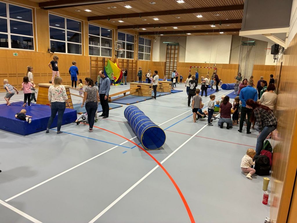 Die Möglichkeit zum Turnen, Klettern, Springen, Balancieren, Schaukeln, Spielen und Toben lockt wöchentlich viele kleine Kinder im Alter von bis zu 6 Jahren in die Alfons Dorfner Halle. Schon am 1. Tag haben sich wieder etliche kleine Knirpse in der Abenteuerhalle getummelt.