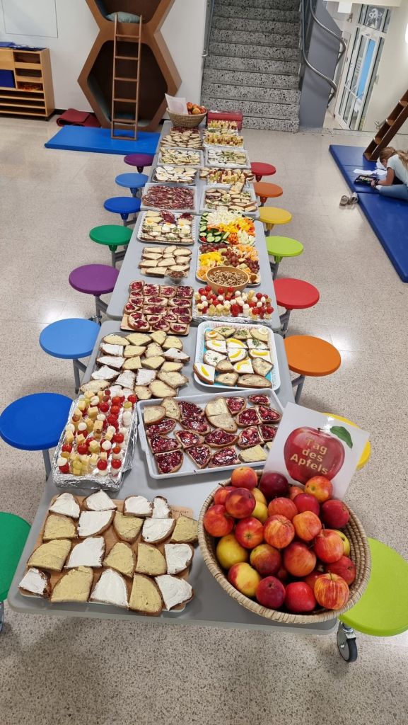 In der Volksschule Lembach wurden die mit regionalen Äpfeln gefüllten Körbe kurzerhand in die dort organisierte Buffetjause integriert.