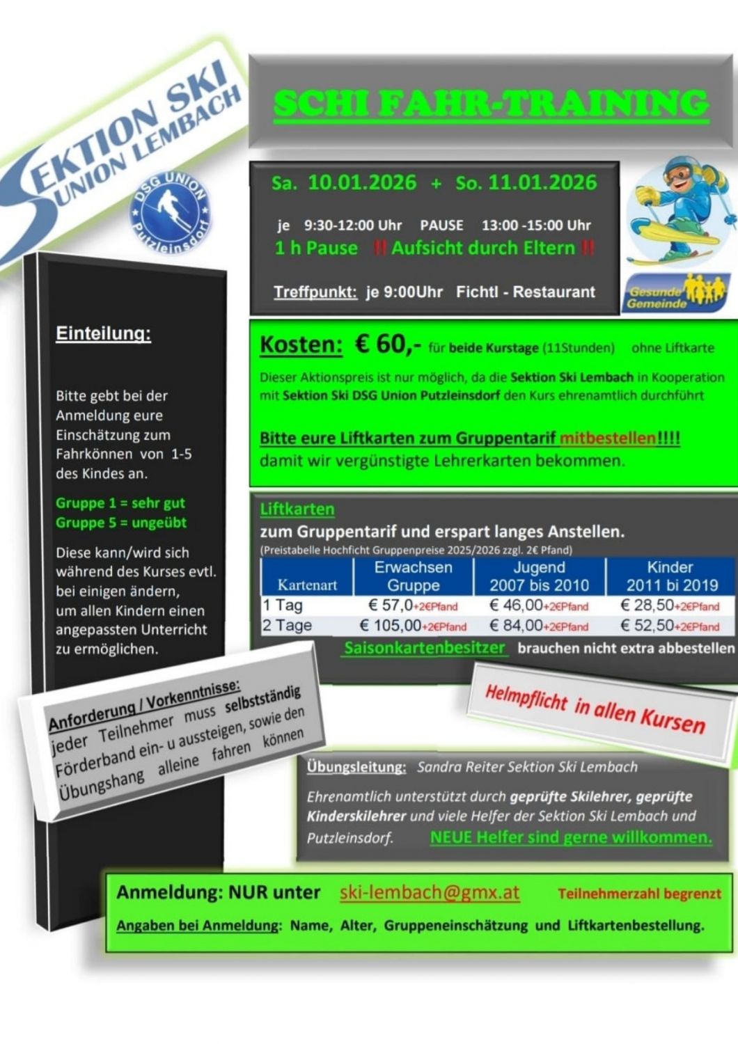 Anmeldungen bitte unter: ski-lembach@gmx.at