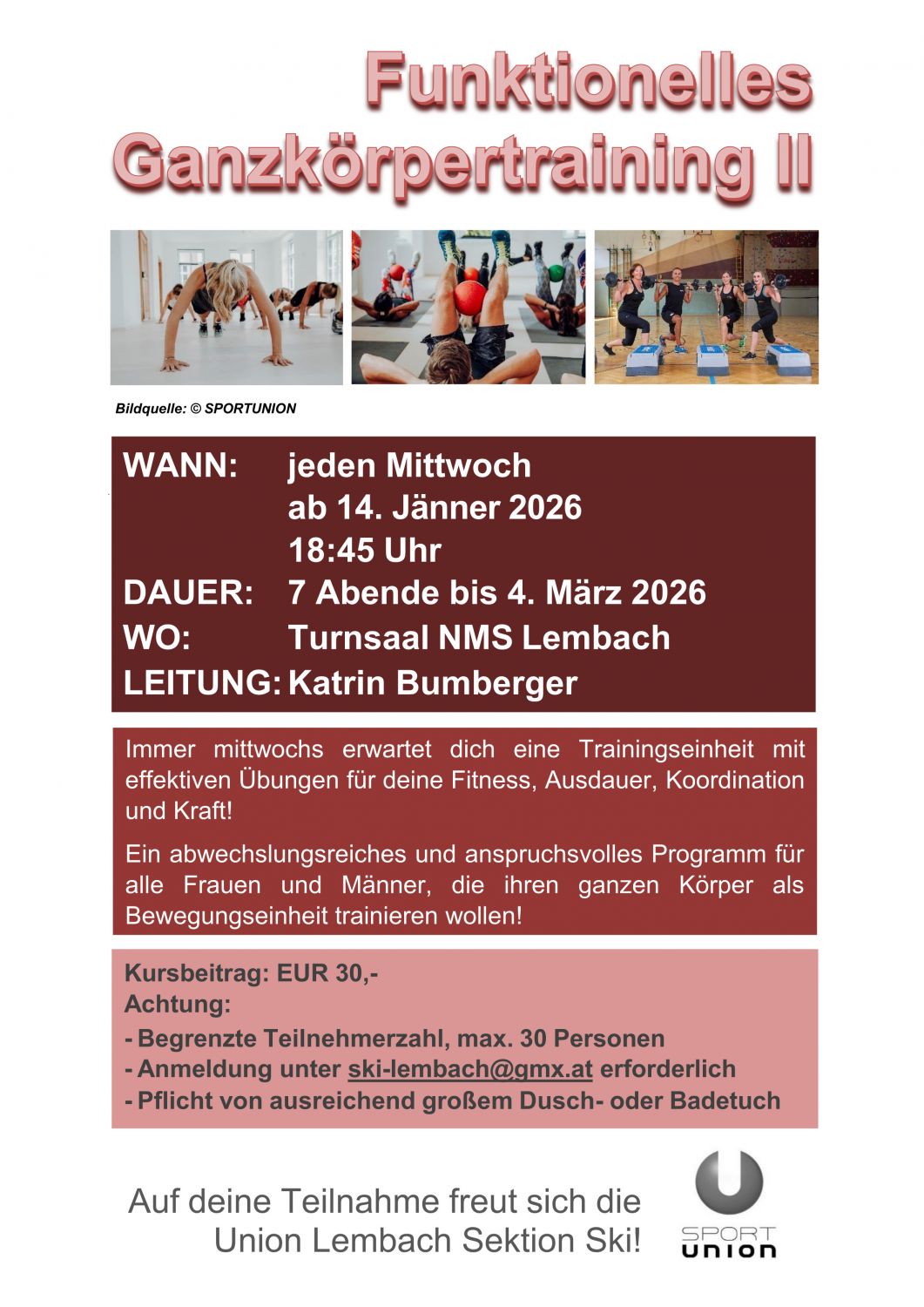Am Mittwoch, 14. Jänner 2026 beginnt das Funktionelle Ganzkörpertraining II.