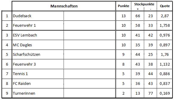Wir bedanken uns bei allen Beteiligten und allen teilnehmenden Mannschaften.