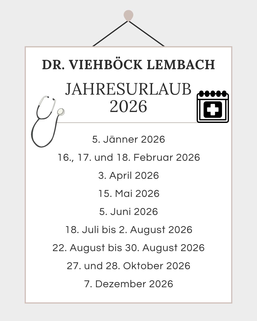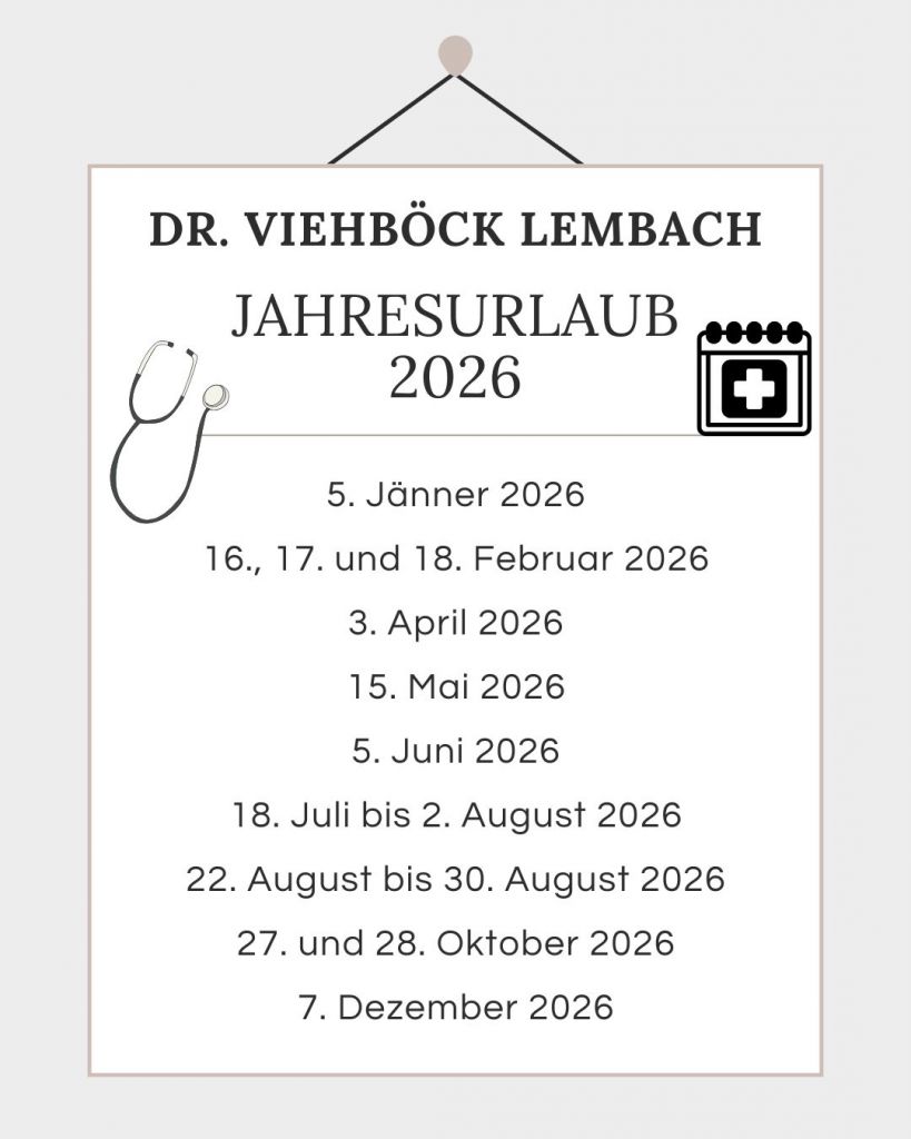Ordination Dr. Viehböck – Urlaubsplan 2026