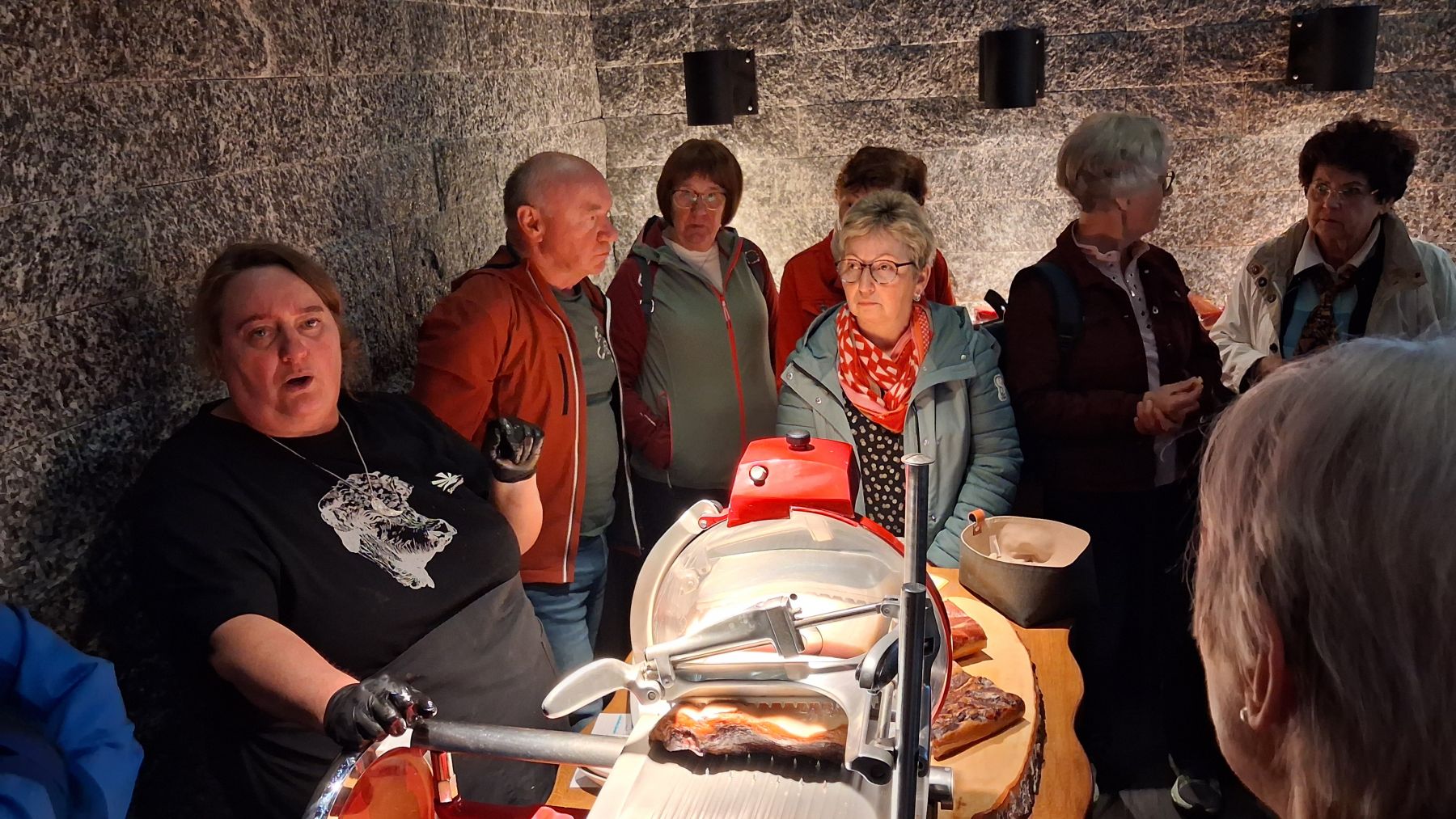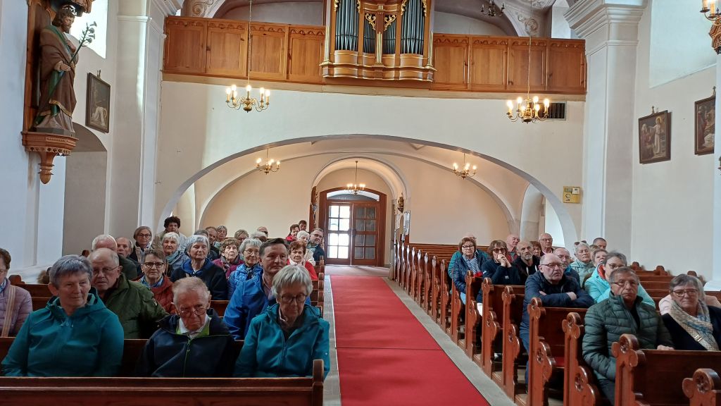 Angekommen in Unterweißenbach, wurden die Senioren von Mitarbeiterinnen des BIO-Betriebes begrüßt und die ganze Firmenphilosophie bei einer Filmvorführung vorgestellt. Eine besonderer Besichtigungsteil war schließlich die „gläserne Schlachterei“ wo wir sehen konnten wie nach der Schlachtung, Rinder zerlegt und weiterverarbeitet werden. Hier wurde uns veranschaulicht, von wo unsere guten Fleischspeisen zu Mittag oder am Jausenteller herkommen. Im Anschluss an das Mittagessen und einer Speckverkostung machten wir uns weiter auf den Weg zum Nachbarort Kaltenberg, wo wir vom 88 jährigen Mesner empfangen wurden. Er stellte uns die Kirchengeschichte und auch den Ort Kaltenberg vor. Nach der Fahrt quer durch das wunderschöne Mühlviertel, kehrten wir zur Abschlussjause beim „Tarockwirt Haudum“ in Helfenberg ein.
