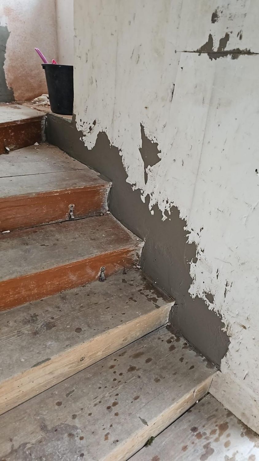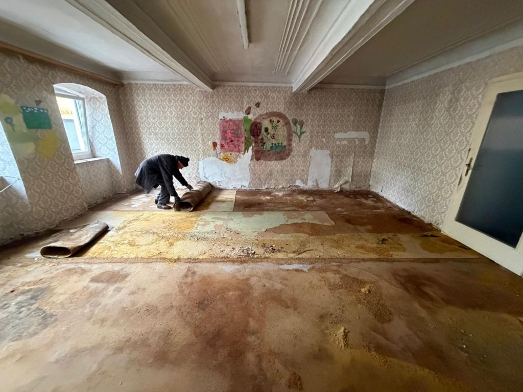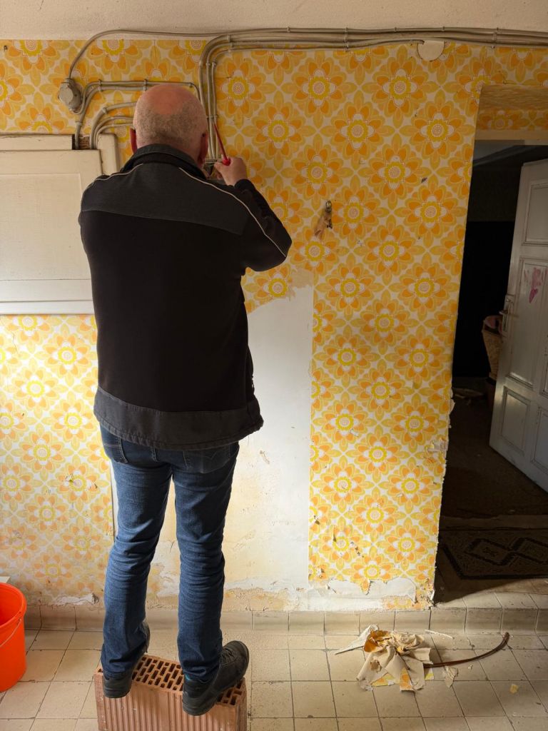 Räume werden freigeräumt, neue Elektrik bringt Licht ins Haus, mit kreativen Lösungen entsteht Schritt für Schritt etwas Neues und Not macht ja bekanntlich erfinderisch: aus einer Küchentür wird kurzerhand eine Dachbodentür.