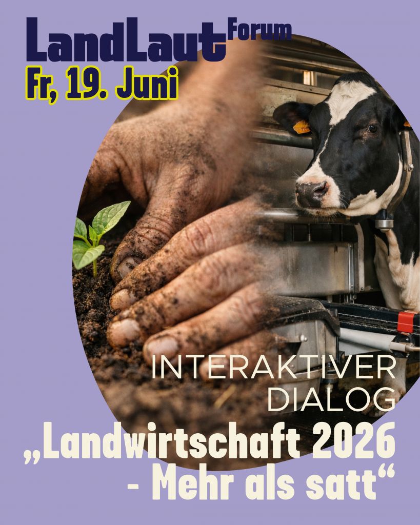 Interaktiver Dialog „LandWIRTSCHAFT 2026 – mehr als satt“. Volle Supermarktregale sind selbstverständlich, doch wie geht es den Menschen, die unsere Lebensmittel erzeugen? Zwischen Preisdruck, Bürokratie und hohen Erwartungen an Tierwohl, Artenschutz und Nachhaltigkeit steht die Landwirtschaft vor großen Herausforderungen.