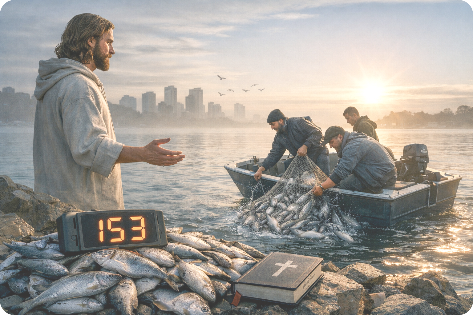 Die Zahl 153 im Evangelium (Evangelium nach Johannes, Joh 21,11) ist kein zufälliges Detail – aber man sollte vorsichtig sein, daraus eine „geheime Codierung“ zu machen. Der Text selbst bleibt nüchtern: Es ist eine konkrete, gezählte Menge. Genau darin liegt schon ein Teil der Aussage.