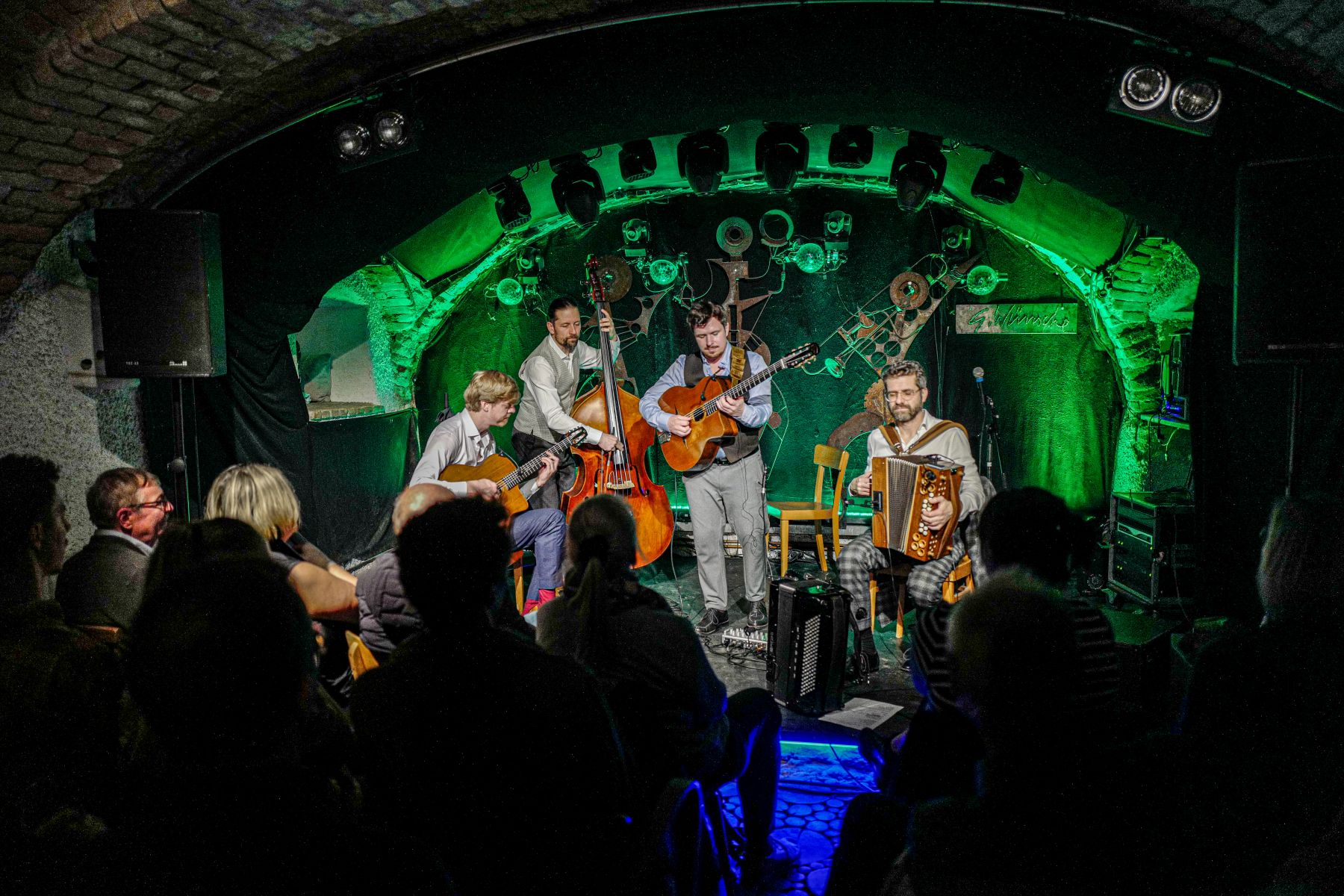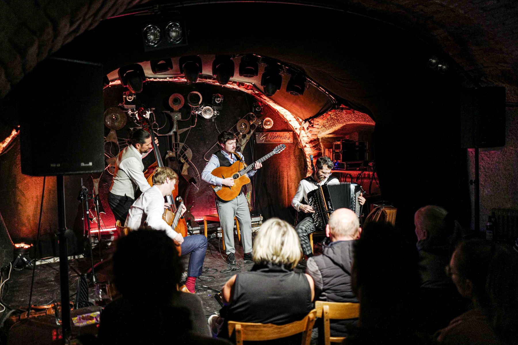 Diknu Schneeberger, einer der international bekanntesten Gypsy-Swing-Gitarristen, und der Akkordeon- und Harmonika-Virtuose Christian Bakanic präsentierten gemeinsam mit Julian Wohlmuth an der Rhythmusgitarre und Martin Heinzle am Kontrabass ihren einzigartigen „Alpin Swing“, eine faszinierende Mischung aus Gypsy-Swing, Balkan-Jazz und neuer Volksmusik.